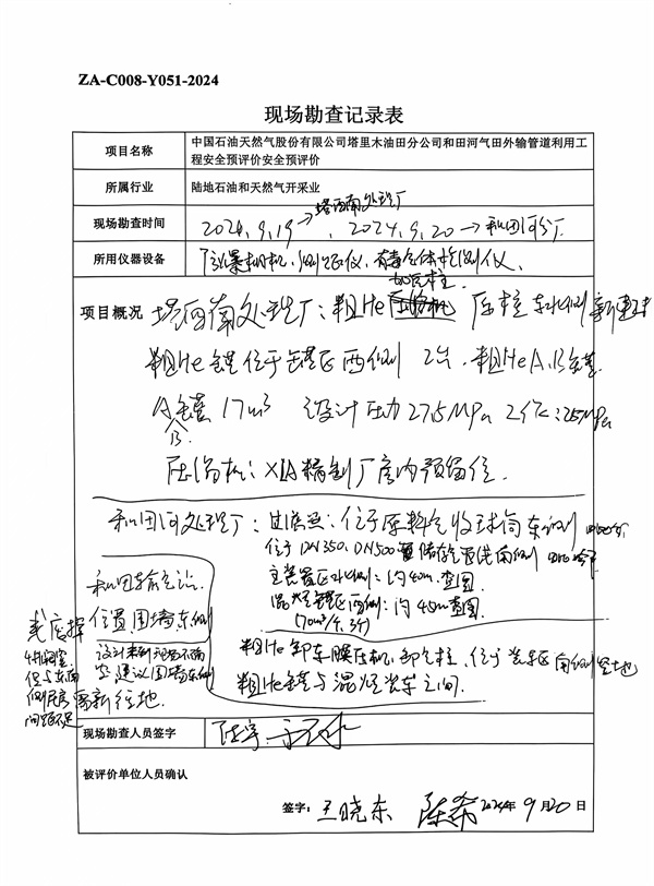 中國石油天然氣股份有限公司塔里木油田分公司和田河氣田外輸管道利用工程安全預(yù)評價報告
