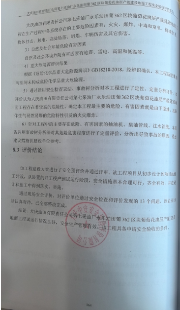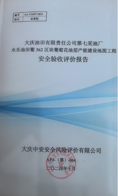 大慶油田有限責(zé)任公司第七采油廠永樂油田葡362區(qū)塊葡萄花油層產(chǎn)能建設(shè)地面工程安全驗收評價 |