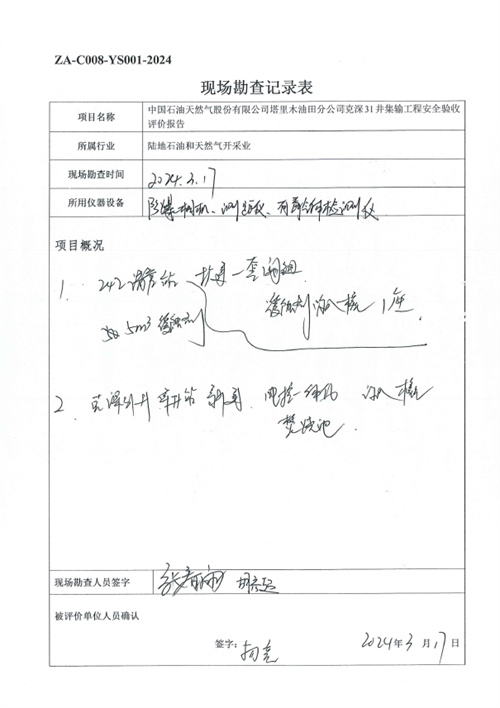 中國石油天然氣股份有限公司塔里木油田分公司克深31井集輸工程安全驗(yàn)收評價報告