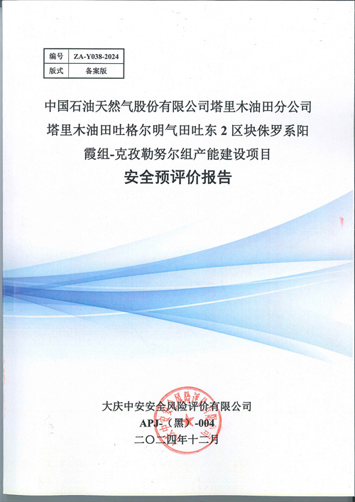 中國石油天然氣股份有限公司塔里木油田分公司 吐格爾明氣田吐東2區(qū)塊侏羅系陽霞組-克孜勒努爾組產(chǎn)能建設(shè)項(xiàng)目地面工程安全預(yù)評(píng)價(jià)報(bào)告