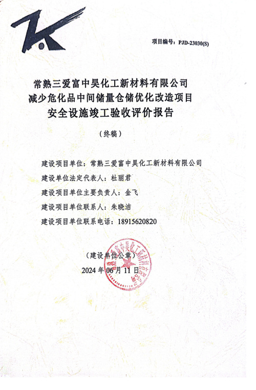 常熟三愛(ài)富中昊化工新材料有限公司減少危化品中間儲(chǔ)量倉(cāng)儲(chǔ)優(yōu)化改造項(xiàng)目 安全設(shè)施竣工驗(yàn)收評(píng)價(jià)報(bào)告