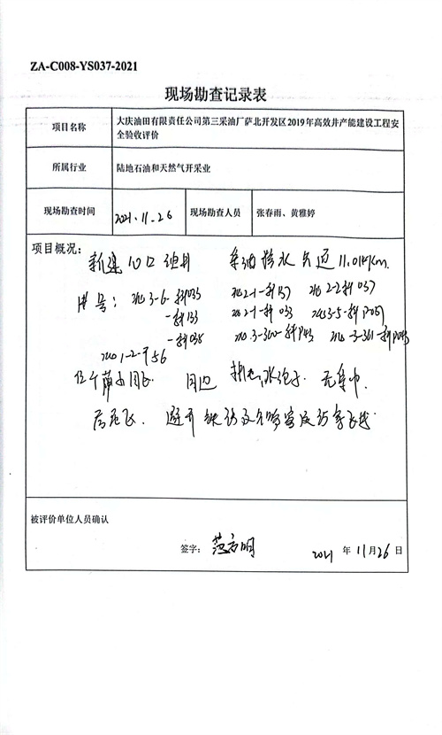 大慶油田有限責任公司第三采油廠薩北開發(fā)區(qū)2019年高效井產(chǎn)能建設工程安全驗收評價報告 |