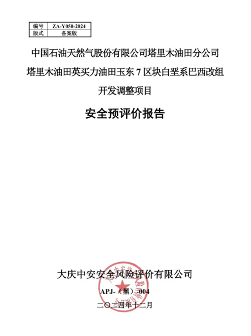 中國石油天然氣股份有限公司塔里木油田分公司塔里木油田英買力油田玉東7區(qū)塊白堊系巴西改組開發(fā)調(diào)整項(xiàng)目安全預(yù)評(píng)價(jià)報(bào)告 |