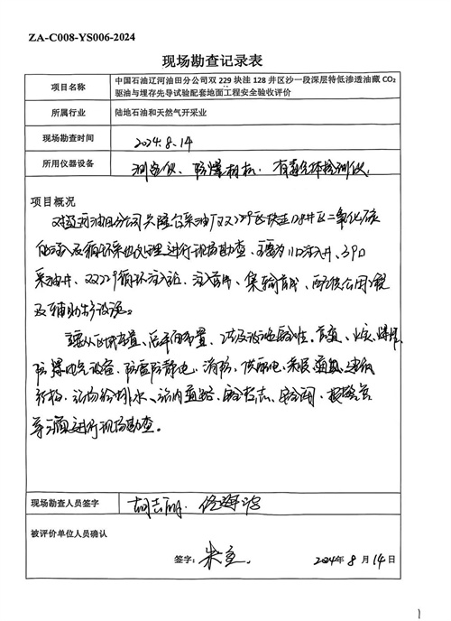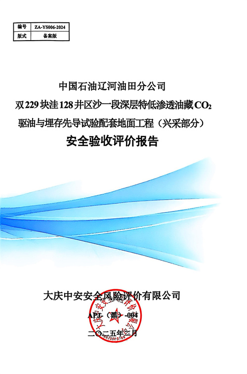中國石油遼河油田分公司雙229塊洼128井區(qū)沙一段深層特低滲透油藏CO2驅(qū)油與埋存先導(dǎo)試驗配套地面工程(興采部分)安全驗收評價報告