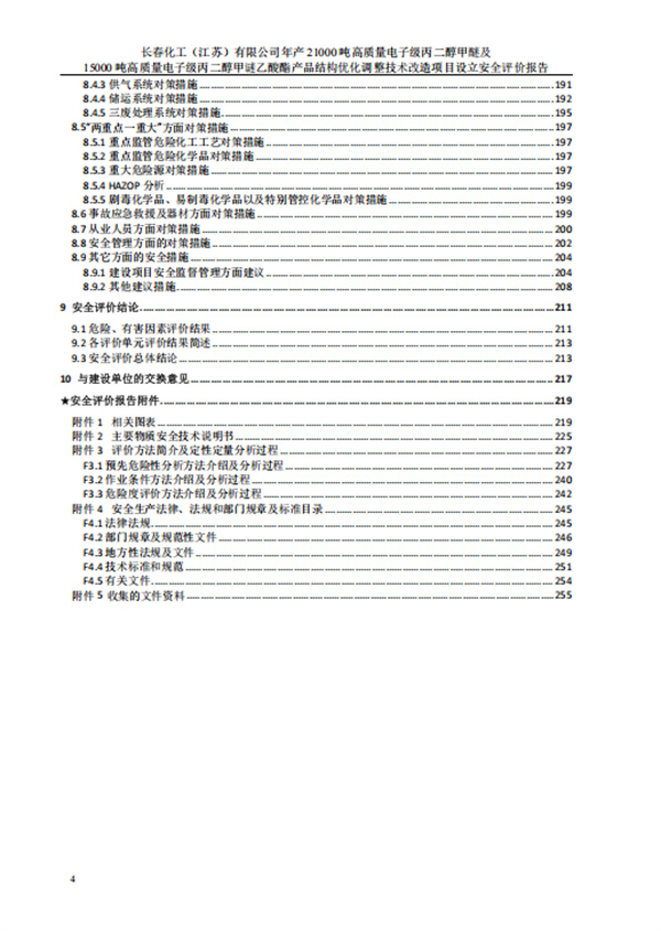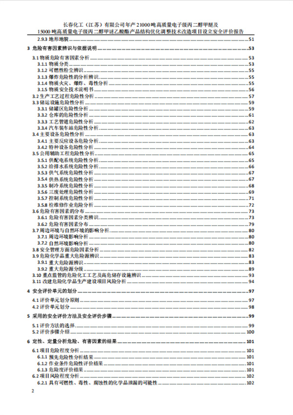 長春化工(江蘇)有限公司年產(chǎn)21000噸高質(zhì)量電子級(jí)丙二醇甲醚及15000噸高質(zhì)量電子級(jí)丙二醇甲醚乙酸酯產(chǎn)品結(jié)構(gòu)優(yōu)化調(diào)整技術(shù)改造項(xiàng)目所涉及到的主要生產(chǎn)裝置、工藝及物料、公用工程及儲(chǔ)運(yùn)設(shè)施、項(xiàng)目安全條件和安全生產(chǎn)條件等進(jìn)行定性定量安全評(píng)價(jià),并對(duì)建設(shè)項(xiàng)目可能存在的危險(xiǎn)、有害因素提出相應(yīng)的對(duì)策措施。 |