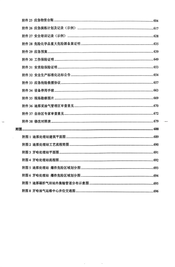 1)迪那處理站、牙哈處理站的油氣生產站場和設施,主要包括處理站、集氣站、井場等生產站場及油氣水管線等。 2)公用工程及輔助生產設施:給排水、消防、供配電、道路、通信、暖通、自控等內容。 3)安全生產管理、重大危險源管理、應急管理、安全生產條件。 |