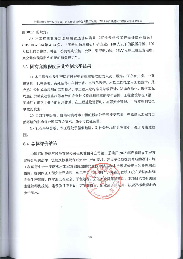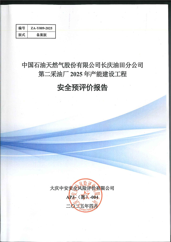 中國石油天然氣股份有限公司長慶油田分公司第二采油廠2025年產(chǎn)能建設(shè)工程安全預(yù)評價報告 |