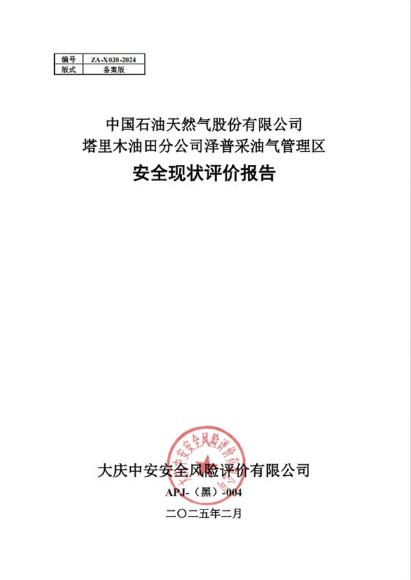中國(guó)石油天然氣股份有限公司塔里木油田分公司澤普采油氣管理區(qū)安全現(xiàn)狀評(píng)價(jià)報(bào)告 |