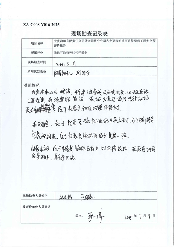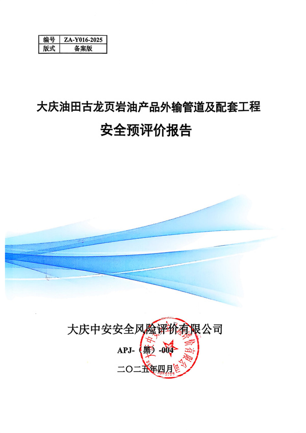 大慶油田古龍頁巖油產品外輸管道及配套工程安全預評價報告 |