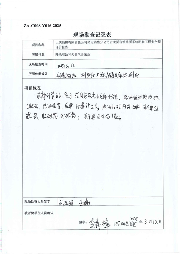 大慶油田古龍頁巖油產品外輸管道及配套工程安全預評價報告