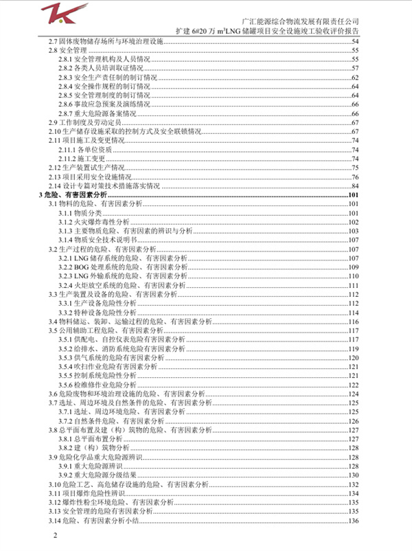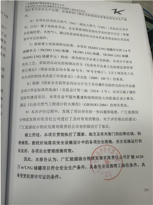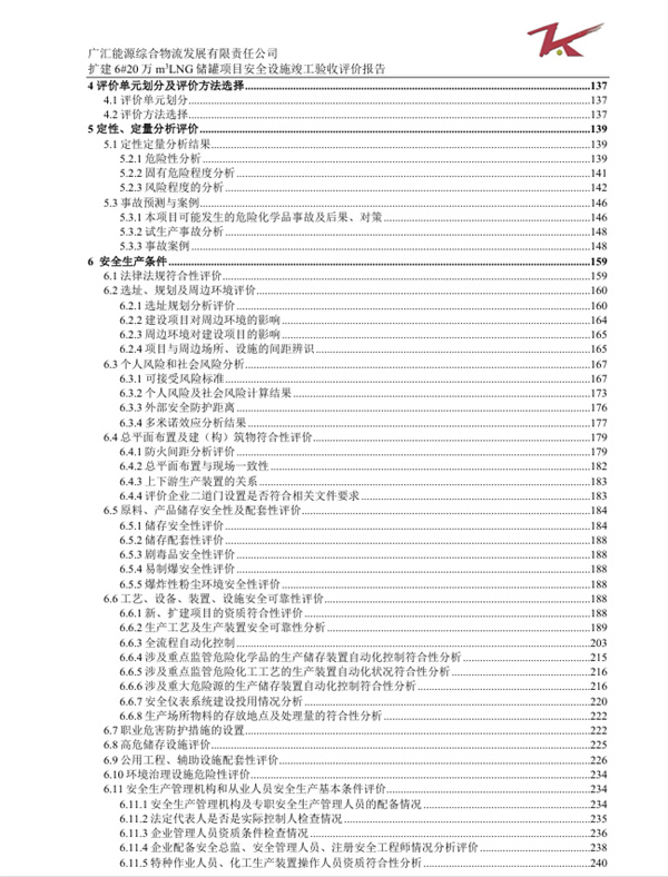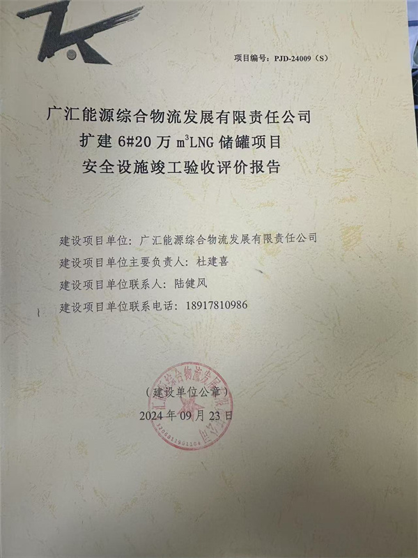 廣匯能源綜合物流發(fā)展有限責(zé)任公司擴建6#20萬m3LNG儲罐項目安全設(shè)施竣工驗收評價報告