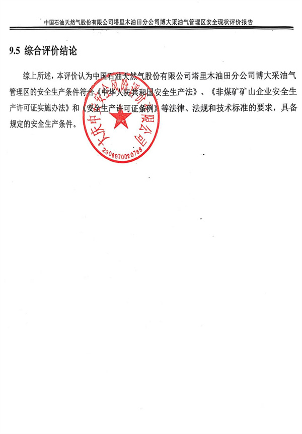 中國(guó)石油天然氣股份有限公司塔里木油田分公司博大采油氣管理區(qū)安全現(xiàn)狀評(píng)價(jià)報(bào)告 |
