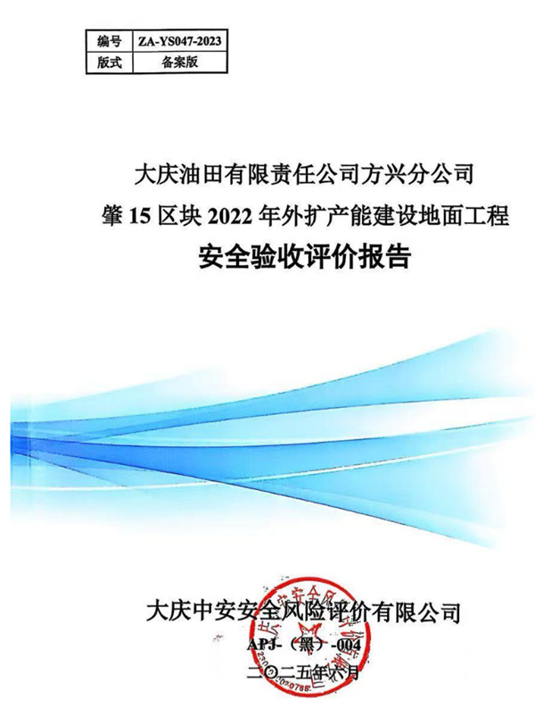 大慶油田有限責任公司方興分公司肇15區(qū)塊2022年外擴產(chǎn)能建設(shè)地面工程安全驗收評價