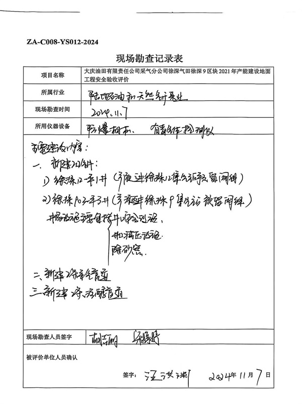 大慶油田有限責(zé)任公司采氣分公司徐深氣田徐深9區(qū)塊2021年產(chǎn)能建設(shè)地面工程安全驗收評價 |
