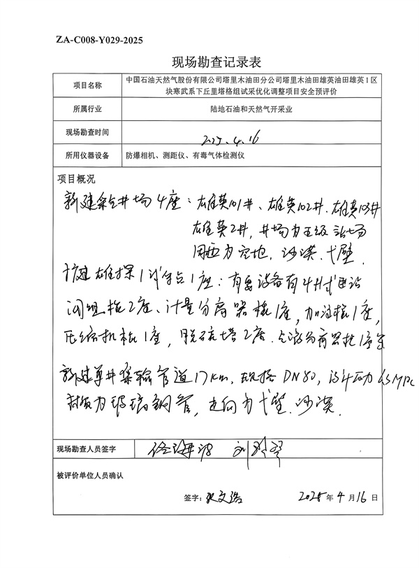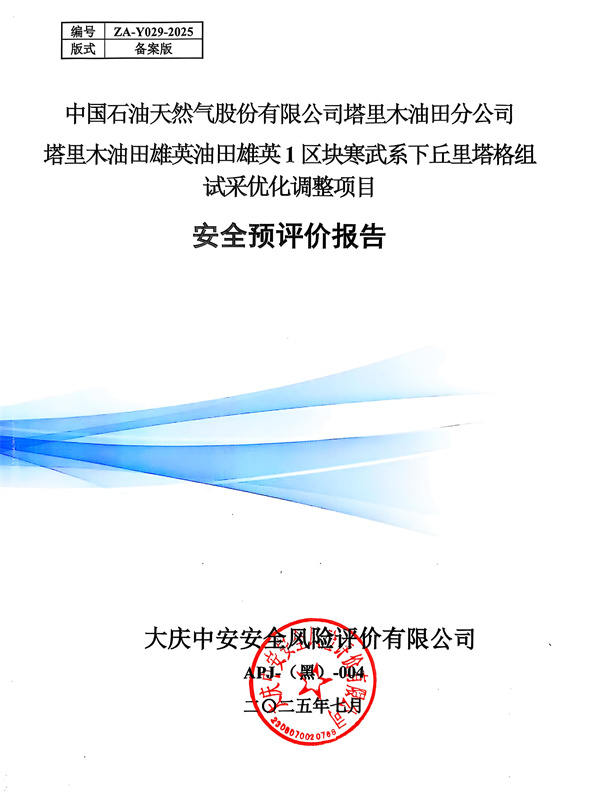 中國石油天然氣股份有限公司塔里木油田分公司塔里木油田雄英油田雄英1區(qū)塊寒武系下丘里塔格組試采優(yōu)化調(diào)整項目安全預(yù)評價報告