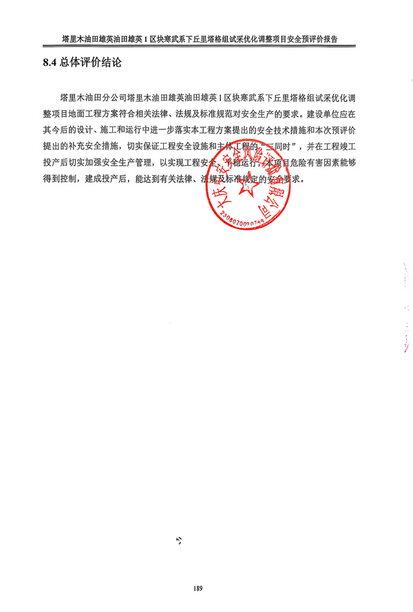 中國石油天然氣股份有限公司塔里木油田分公司塔里木油田雄英油田雄英1區(qū)塊寒武系下丘里塔格組試采優(yōu)化調(diào)整項目安全預(yù)評價報告 |