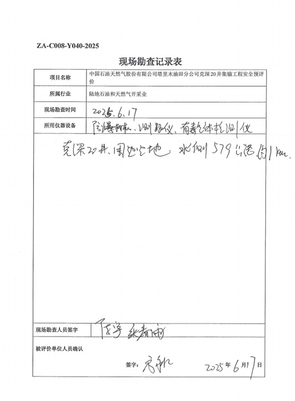 中國石油天然氣股份有限公司塔里木油田分公司克深20井集輸工程安全預(yù)評價報告