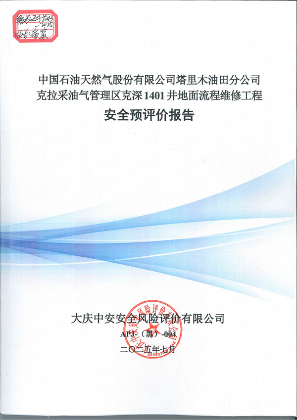中國石油天然氣股份有限公司塔里木油田分公司克拉采油氣管理區(qū)克深1401井地面流程維修工程安全預(yù)評價報告