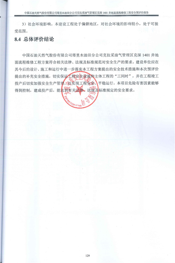 中國石油天然氣股份有限公司塔里木油田分公司克拉采油氣管理區(qū)克深1401井地面流程維修工程安全預(yù)評價報告 |