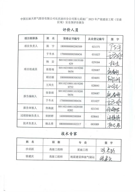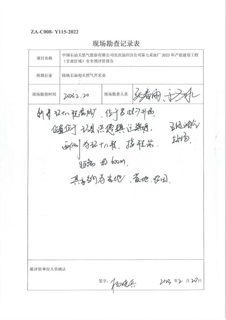 中國石油天然氣股份有限公司長慶油田分公司第七采油廠2023年產(chǎn)能建設(shè)工程(甘肅區(qū)域)安全預(yù)評價(jià) |