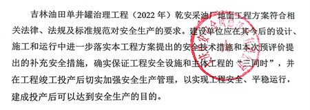 吉林油田單井罐治理工程(2022年)乾安采油廠地面工程安全評價報告
