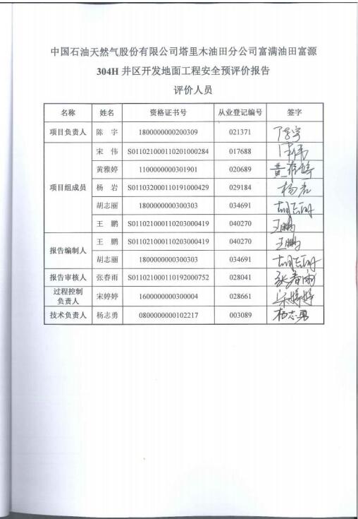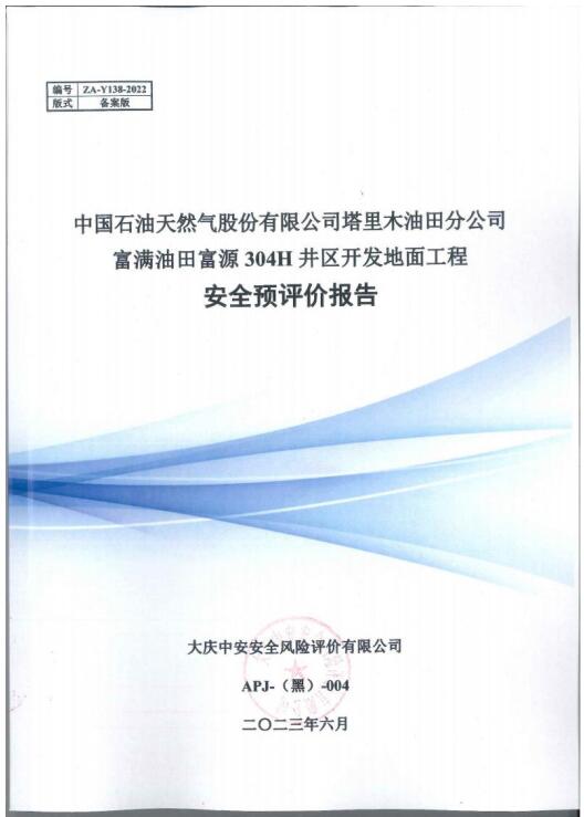 中國石油天然氣股份有限公司塔里木油田分公司富滿油田富源304H井區(qū)開發(fā)地面工程 安全評價報告