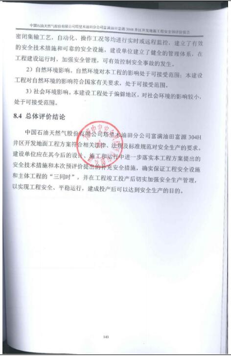 中國石油天然氣股份有限公司塔里木油田分公司富滿油田富源304H井區(qū)開發(fā)地面工程方案符合相關(guān)法律、法規(guī)及標(biāo)準(zhǔn)規(guī)范對安全生產(chǎn)的要求。建設(shè)單位應(yīng)在其今后的設(shè)計、施工和運行中進(jìn)一步落實本工程方案提出的安全技術(shù)措施和本次預(yù)評價提出的補充安全措施,確實保證工程安全設(shè)施和主體工程的“三同時”,并在工程竣工投產(chǎn)后切實加強(qiáng)安全生產(chǎn)管理,以實現(xiàn)工程安全、平穩(wěn)運行,建成投產(chǎn)后可以達(dá)到安全生產(chǎn)的目的。 |