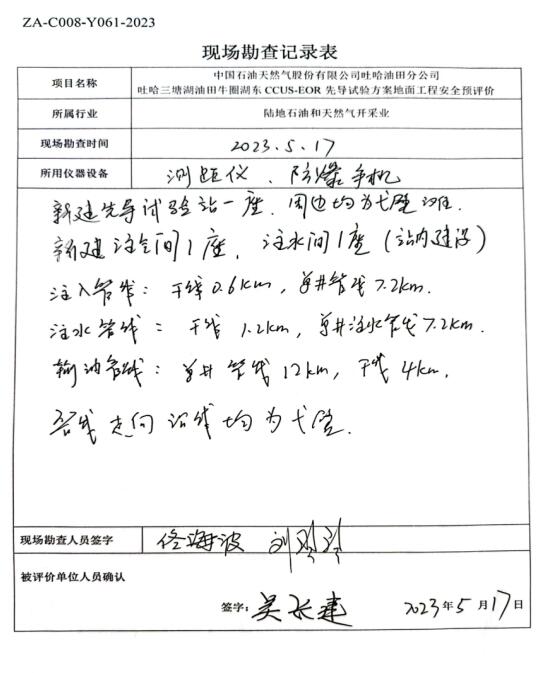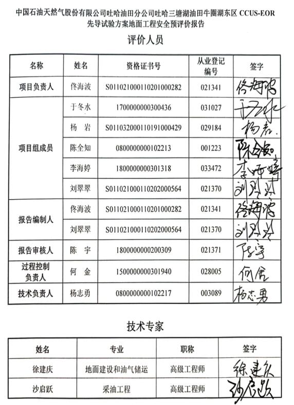 中國石油天然氣股份有限公司吐哈油田分公司吐哈三塘湖油田牛圈湖東區(qū)CCUS-EOR先導(dǎo)試驗(yàn)方案地面工程安全預(yù)評價(jià) |