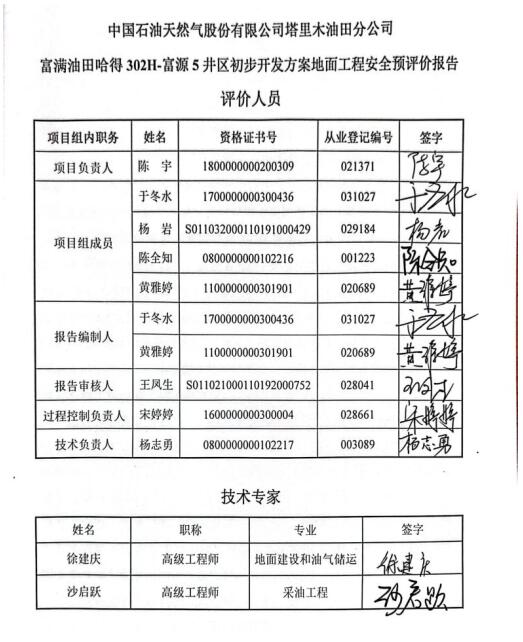 中國石油天然氣股份有限公司塔里木油田分公司富滿油田哈得302H-富源5井區(qū)初步開發(fā)方案地面工程安全評(píng)價(jià)報(bào)告