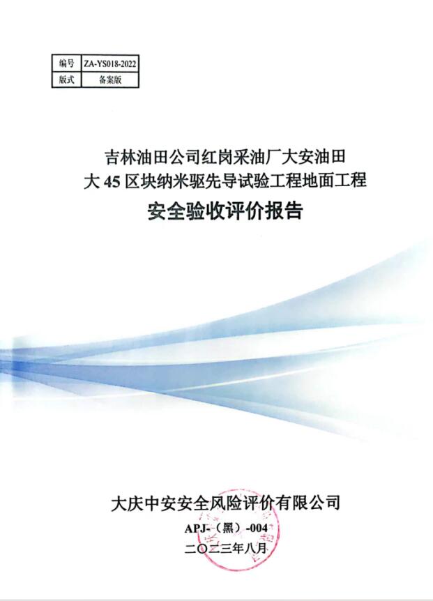 吉林油田公司紅崗采油廠大安油田大45區(qū)塊納米驅(qū)先導(dǎo)試驗(yàn)工程地面工程 安全評(píng)價(jià)報(bào)告