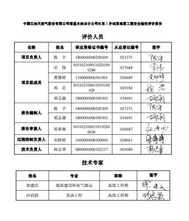 中國(guó)石油天然氣股份有限公司塔里木油田分公司吐東2井試采地面工程安全驗(yàn)收評(píng)價(jià)報(bào)告 |