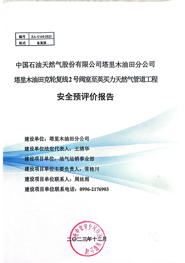 塔里木油田克輪復(fù)線2號(hào)閥室至英買力天然氣管道工程安全預(yù)評(píng)價(jià)報(bào)告 |