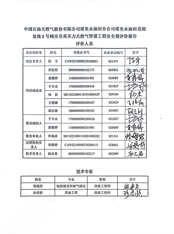 中國(guó)石油天然氣股份有限公司塔里木油田分公司 塔里木油田克輪復(fù)線2號(hào)閥室至英買力天然氣管道工程安全預(yù)評(píng)價(jià)報(bào)告