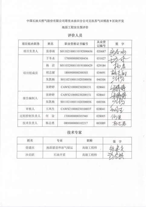中國(guó)石油天然氣股份有限公司塔里木油田分公司克拉蘇氣田博孜9區(qū)塊開(kāi)發(fā)地面工程安全預(yù)評(píng)價(jià) |