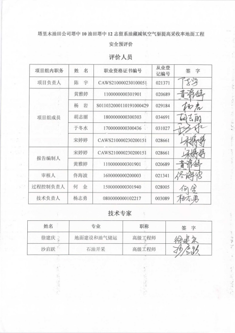 到現(xiàn)場開展安全評價工作的人員名單 |