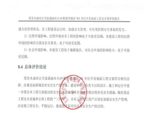 塔里木油田公司富滿油田FI19斷裂帶滿深701井區(qū)開(kāi)發(fā)地面工程安全驗(yàn)收評(píng)價(jià)報(bào)告
