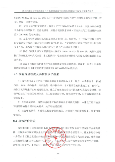 塔里木油田公司富滿油田FI19斷裂帶滿深702井區(qū)開發(fā)地面工程安全驗收評價報告 |