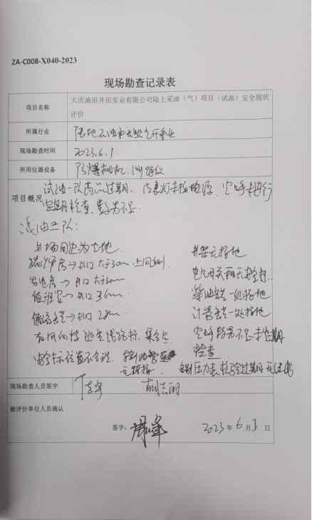 大慶油田井田實(shí)業(yè)有限公司陸上采油(氣)項(xiàng)目(試油)安全現(xiàn)狀評(píng)價(jià)報(bào)告 |
