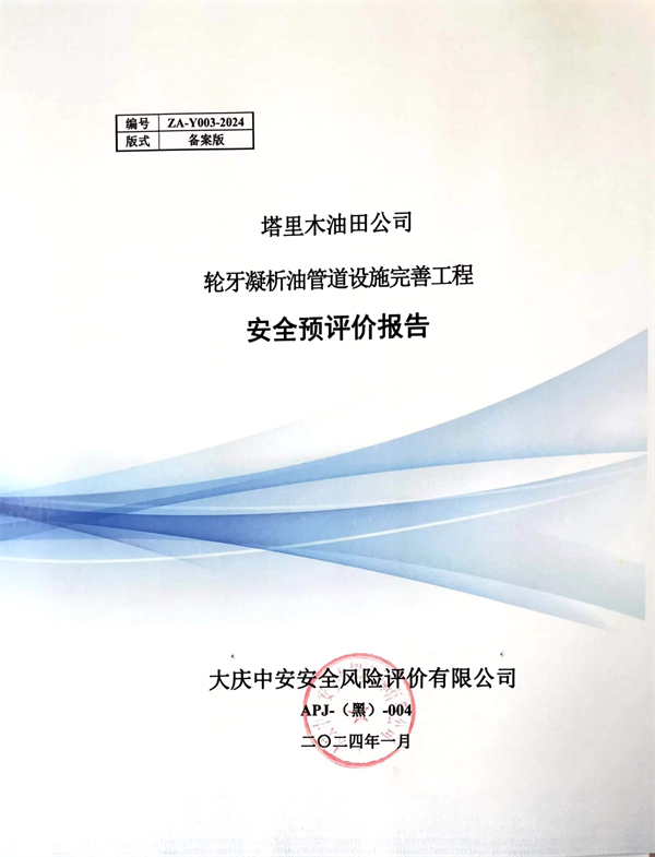 塔里木油田公司輪牙凝析油管道設(shè)施完善工程安全預(yù)評(píng)價(jià)報(bào)告