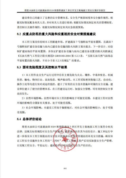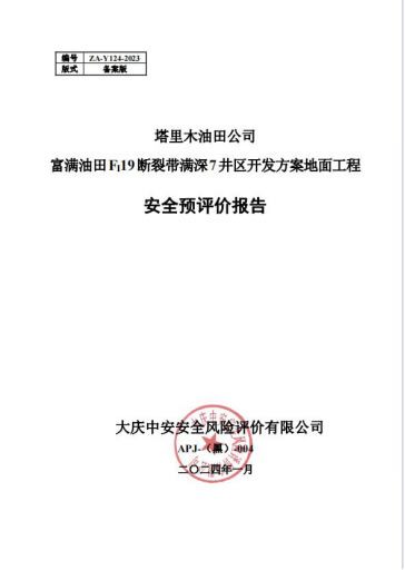 塔里木油田公司富滿油田FI19斷裂帶滿深7井區(qū)開發(fā)方案地面工程安全預(yù)評(píng)價(jià)