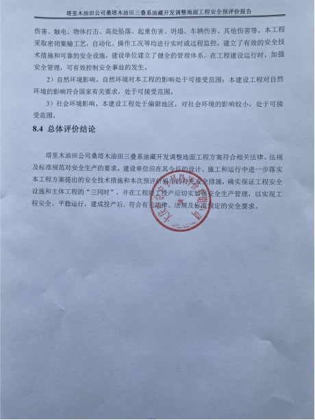 塔里木油田公司桑塔木油田三疊系油藏開發(fā)調(diào)整地面工程安全預(yù)評價報告