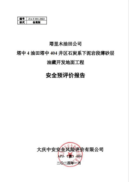塔里木油田公司塔中4油田塔中404井區(qū)石炭系下泥巖段薄砂層油藏開發(fā)地面工程安全預(yù)評價(jià)