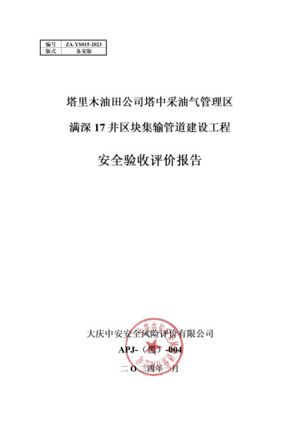 塔里木油田公司塔中采油氣管理區(qū)滿深17井區(qū)塊集輸管道建設(shè)工程安全驗收評價報告 |