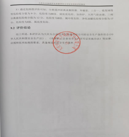 大慶頭臺油田開發(fā)有限責(zé)任公司安全現(xiàn)狀評價報告 |