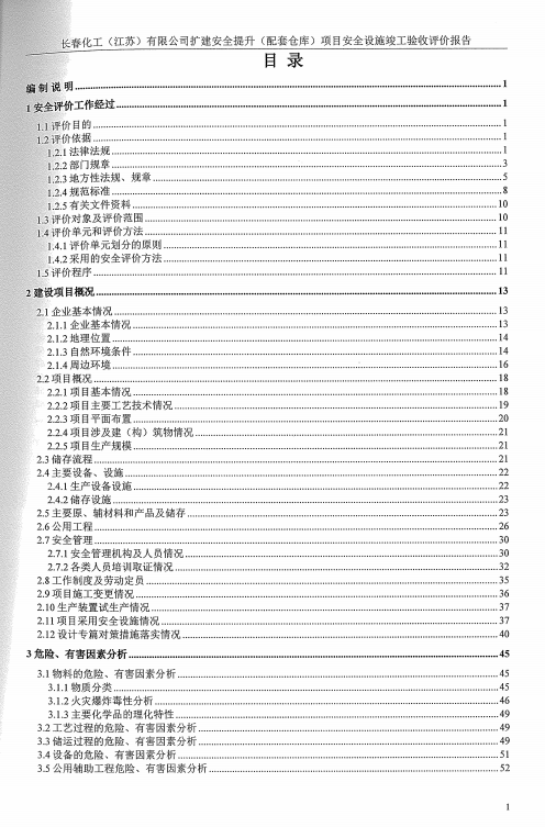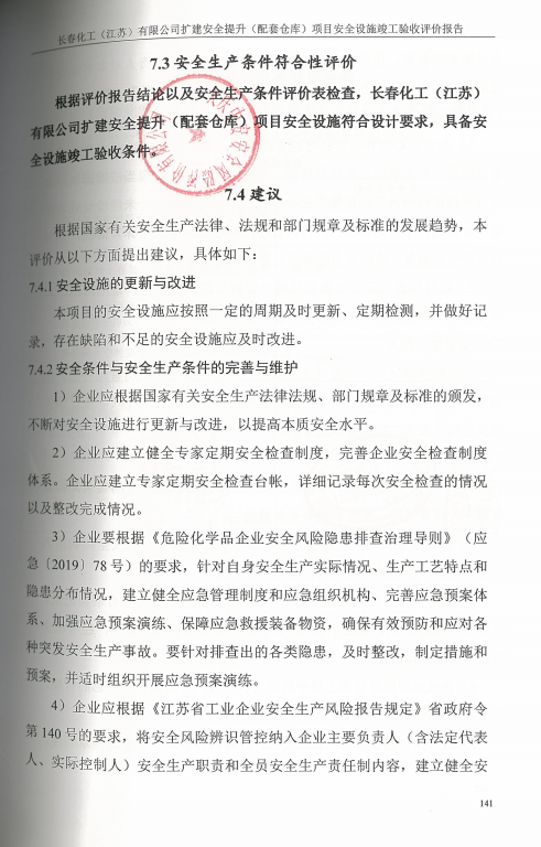 長春化工(江蘇)有限公司擴(kuò)建安全提升(配套倉庫)項(xiàng)目安全設(shè)施竣工驗(yàn)收評價報告 |