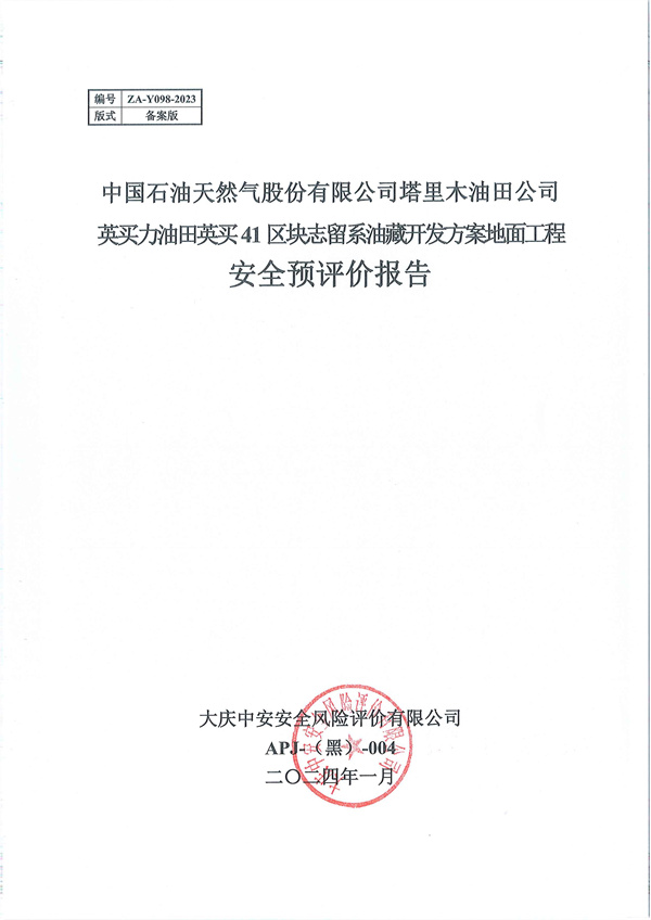 中國石油天然氣股份有限公司塔里木油田公司英買力油田英買41區(qū)塊志留系油藏開發(fā)方案地面工程安全預(yù)評(píng)價(jià)報(bào)告