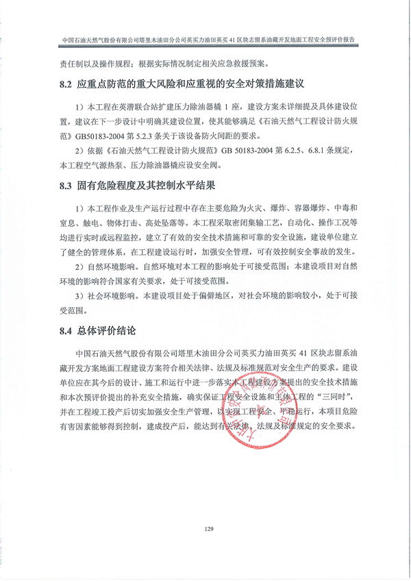 中國石油天然氣股份有限公司塔里木油田公司英買力油田英買41區(qū)塊志留系油藏開發(fā)方案地面工程安全預(yù)評(píng)價(jià)報(bào)告 |