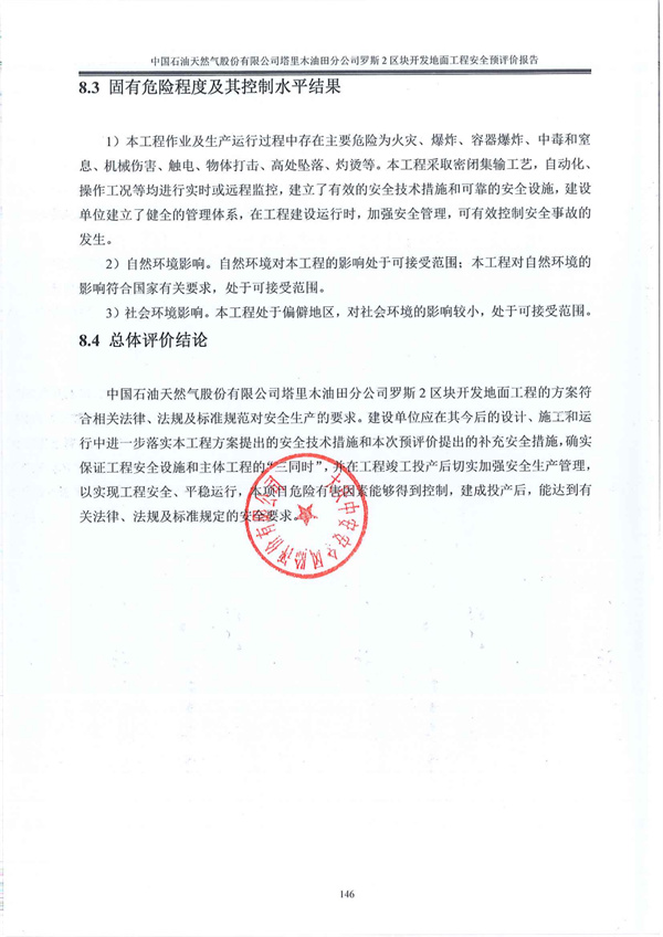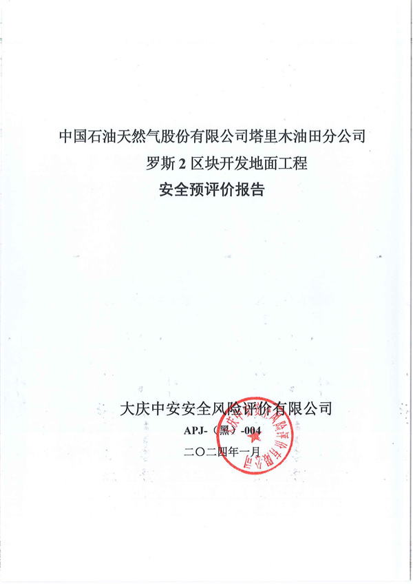 中國石油天然氣股份有限公司塔里木油田分公司羅斯2區(qū)塊開發(fā)地面工程安全預(yù)評價報告
