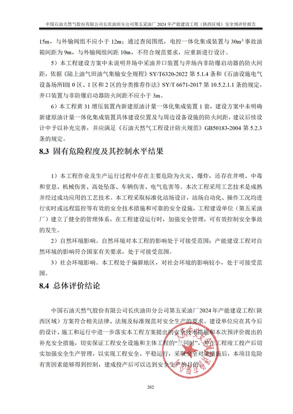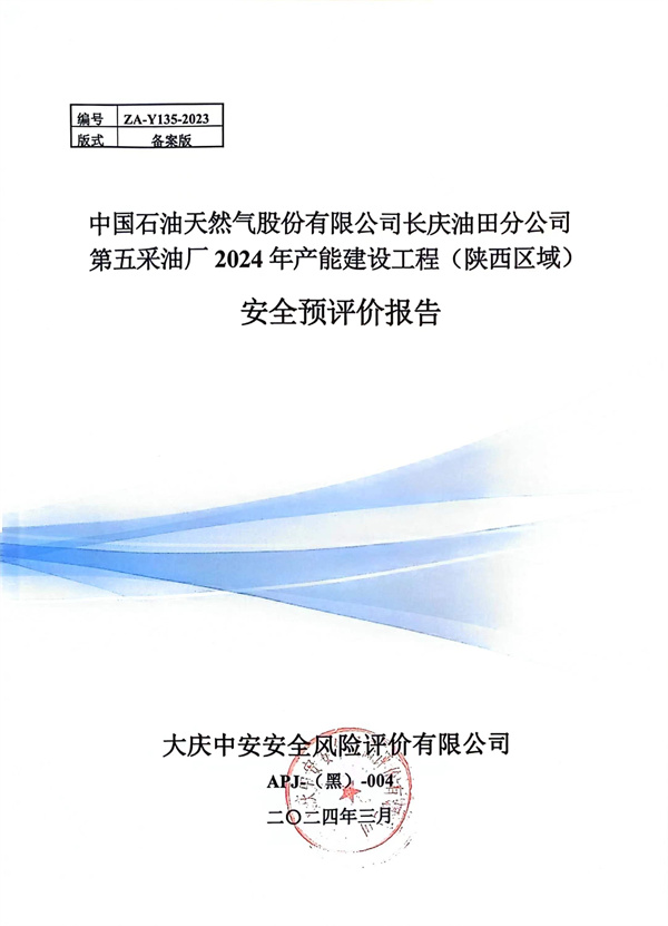 中國石油天然氣股份有限公司長慶油田分公司第五采油廠2024年產(chǎn)能建設(shè)工程(陜西區(qū)域)安全預評價