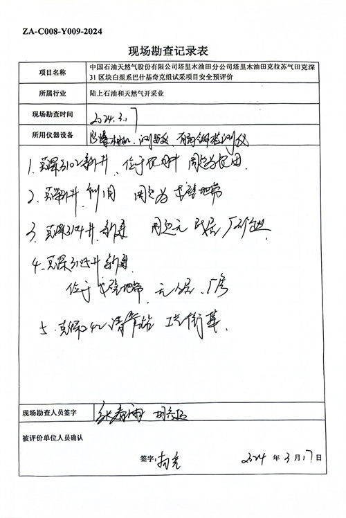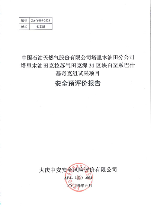 中國石油天然氣股份有限公司塔里木油田克拉蘇氣田克深31區(qū)塊白堊系巴什基奇克組試采項目安全預評價